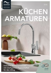 K DIANA K600 Spültisch-Einhandmischer mit seitlicher Bedienung und schwenkbarem Auslauf, Höhe 290 mm, Ausladung 210 mm, verchromt, (DI426100500) 261,– € DIANA K600 Spültisch-Einhandmischer mit seitlicher Bedienung und schwenkbarem, herausziehbarem Auslauf, Höhe 295 mm, Ausladung 220 mm, verchromt, (DI426120500) 363,– € DIANA K600 Spültisch-Einhandmischer mit hohem, schwenkbaren Auslauf, mit seitlicher Bedienung, Auslaufhöhe 375 mm, verchromt, (DI425310500) 272,– € DIANA K600-Black Spültisch-Einhandmischer mit seitlicher Betätigung mit seitlichem Hebel, schwenkbarem Auslauf, Strahlregler M18x1, hoher Auslauf 290 mm, Schwarz matt (DI426100530) 371,– € DIANA K600-Black Spültisch-Einhandmischer mit seitlicher Betätigung, mit seitlichem Hebel, schwenkbarer und ausziehbarer Auslauf, Strahlregler M16x1, Schwarz matt (DI426120530) 490,– € DIANA K600-Black Spültisch-Einhandmischer mit hohem, schwenkbaren Auslauf, mit seitlicher Bedienung, Auslaufhöhe 375 mm, Schwarz matt, (DI425310530) 382,– € Alle Preise ohne Dekoration. UVP inkl. gesetzl. MwSt. 11